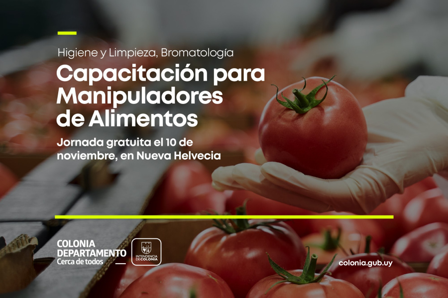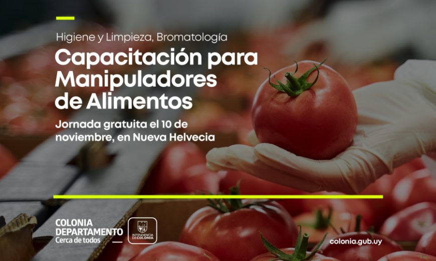 La Intendencia de Colonia, Departamento de Higiene y Limpieza y Dirección de Bromatología, continuando con el programa de “Capacitación para Manipuladores de Alimentos” del Departamento de Colonia, comunica que se realizará una jornada de capacitación en la ciudad de Nueva Helvecia, destinada a toda persona que elabore y/o manipule alimentos.