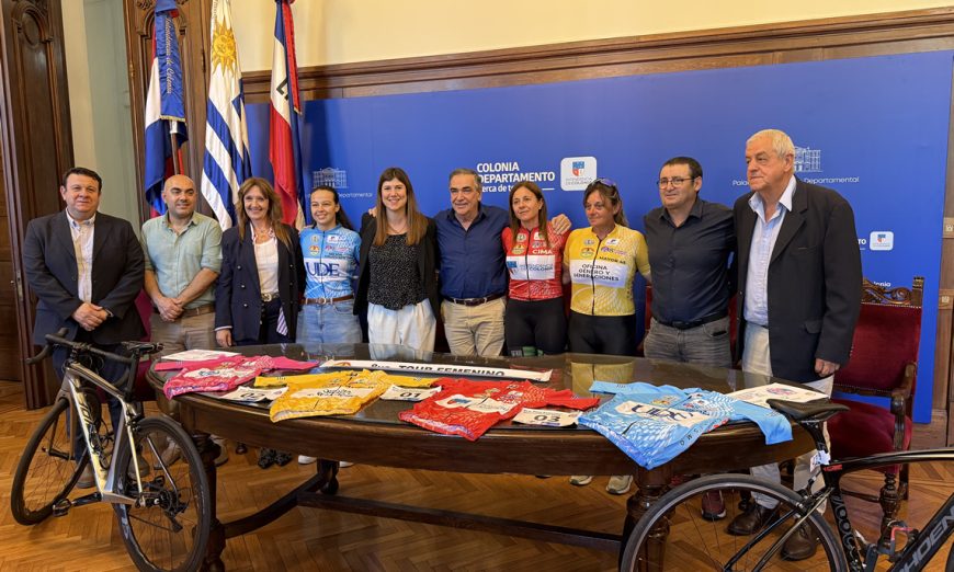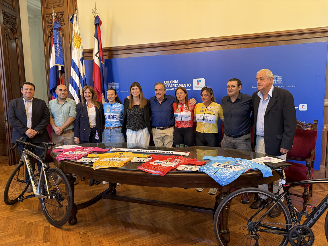 En el Salón de Actos del Palacio de Gobierno Departamental, se realizó el lanzamiento del 8º Tour Femenino Internacional de Ciclismo que se desarrollará del viernes 17 al domingo 20 en nuestro Departamento. Acompañaron en la mesa al Intendente de Colonia Guillermo A. Rodríguez, la Secretaria General Dra. M.ª Belén Rico, el Director de Deportes Diego Berretta, la Directora de Género y Generaciones Isabella Roselli, el Presidente de la Federación Departamental de Ciclismo Julio Castrillo y por la Federación Ciclista del Uruguay Daniel Gutiérrez.