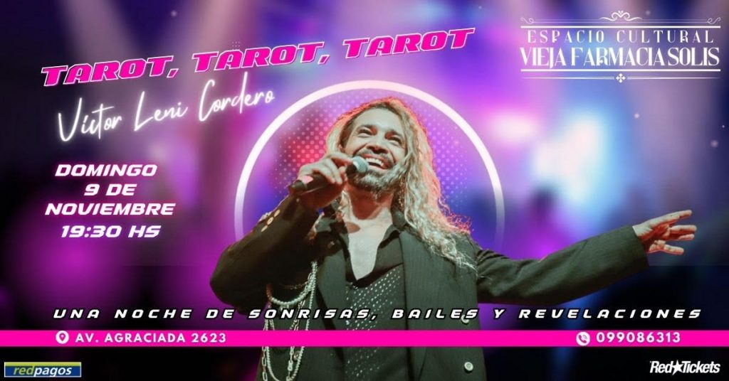 Un show único donde el Tarot se convierte en escenario vivo. Con humor, historias y emoción, Víctor Leni Cordero nos invita a recorrer el tránsito de nuestro Año del Ermitaño hacia la vibrante Rueda de la Fortuna. Entre cartas, anécdotas y encuentros, cada persona encontrará un mensaje para atesorar en el corazón.