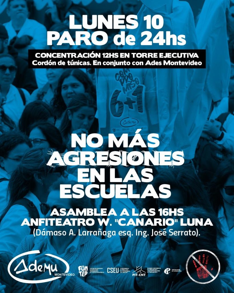 Luego de la agresión que sufrieron maestras, alumnos y padres en la Escuela N°123 de Jardines del Hipódromo la semana pasada, Ademu volvió a parar este lunes y se manifestó en la Plaza Independencia.