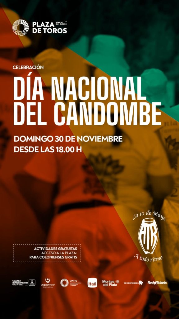 La Intendencia de Colonia, a través de la Dirección de Cultura, informa que el próximo 30 de noviembre se llevará a cabo una nueva jornada festiva conmemorando el día nacional del candombe (3 de diciembre), en el entorno de la Avda. Mihanovich, con escenario montado de espaldas a la imponente Plaza de Toros de Colonia del Sacramento, ofreciendo un marco único para esta celebración popular.