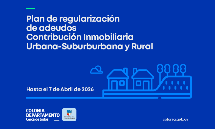 La Intendencia de Colonia, a través del Departamento de Hacienda y Administración comunica que se llevará a cabo un Plan de Regularización de Adeudos para Contribución Inmobiliaria Urbana-Sub Urbana y Rural.